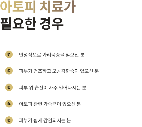 발병 특성과 체질에 따른 개별화된 치료로 면역력 개선과 피부증상을 함께 치료합니다.