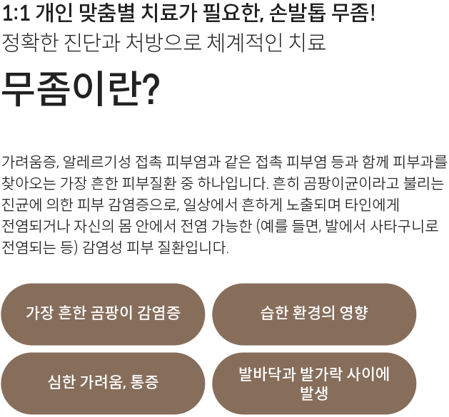 발병 특성과 체질에 따른 개별화된 치료로 피부과 전문의가 면역력개선과 피부증상을 함께 치료합니다.