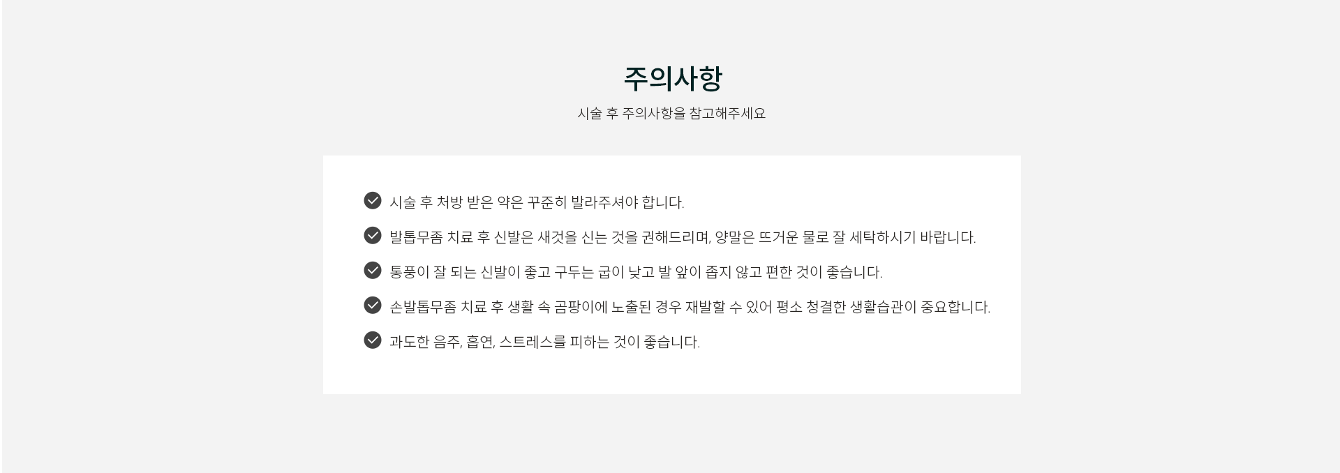 손발톱에 생기는 곰팡이 감염증은 전염이 될 수 있기 때문에 피부과 전문의에게 정확히 진단받고 적절한 치료를 받는 것이 좋습니다.