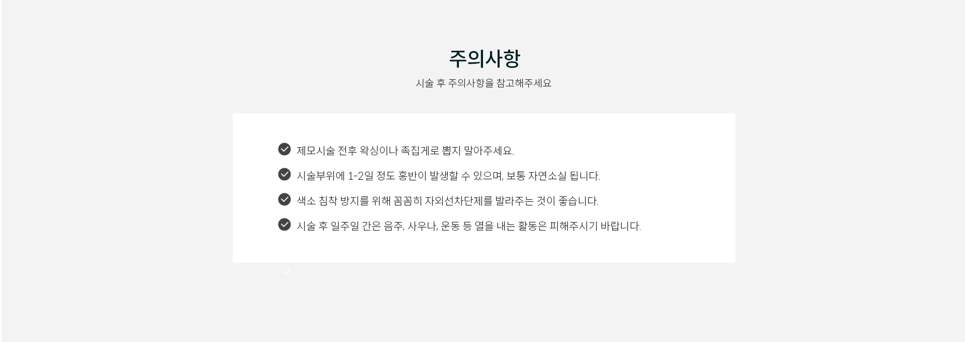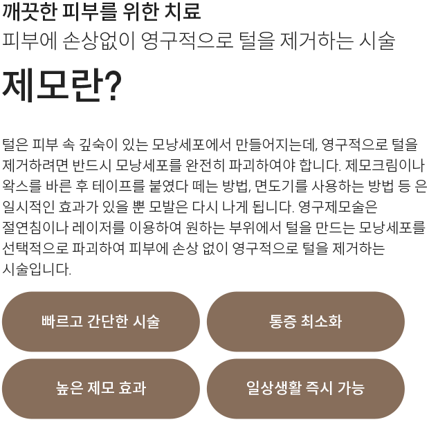 프리미엄 제모 장비 시술로 피부 속 털의 뿌리, 모낭을 빠르고 강력하게 제거합니다.