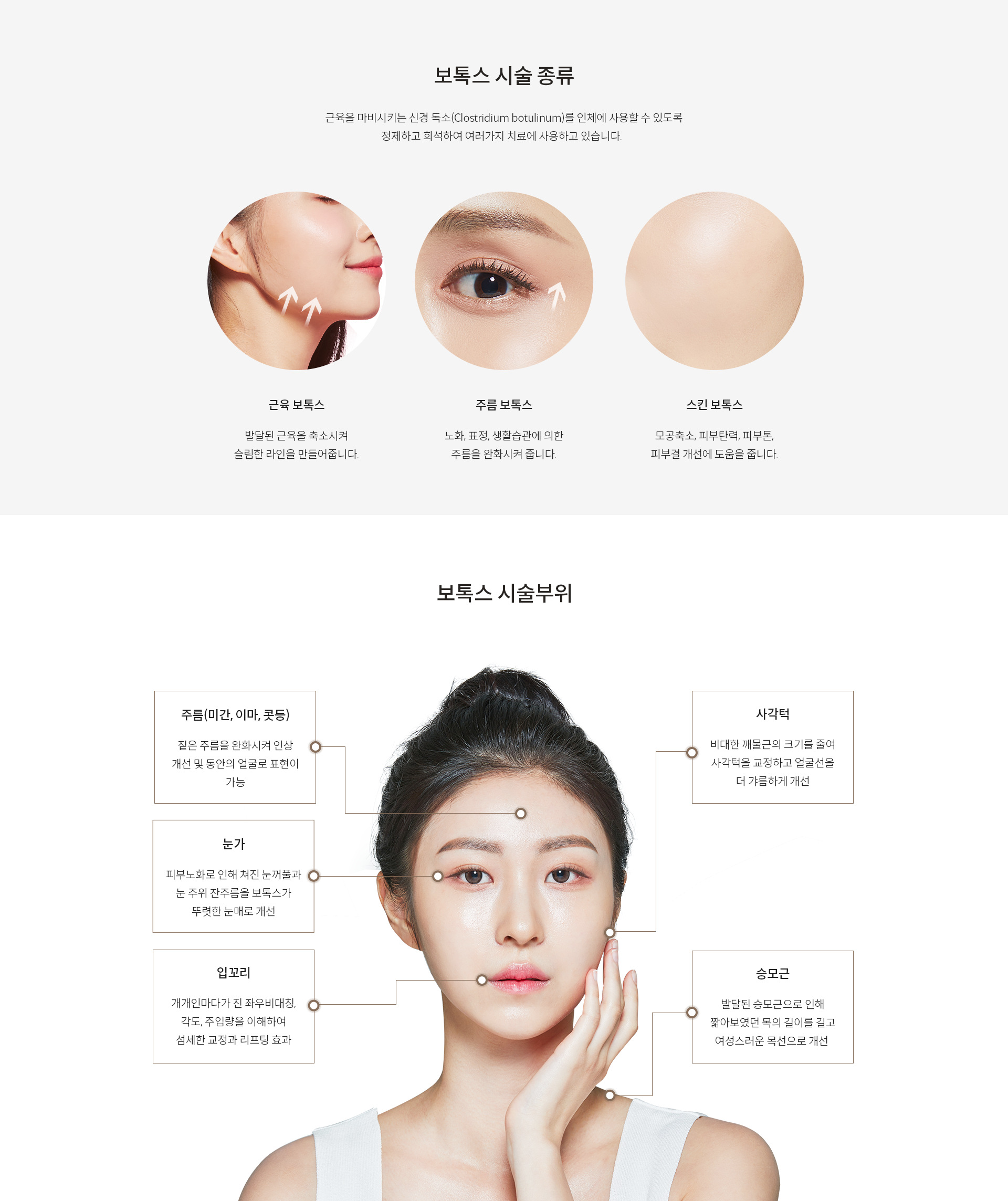 보기 싫은 주름 개선, 불필요한 근육축소, V라인, 피부 탄력, 다한증 치료까지 다양한 시술이 가능합니다.